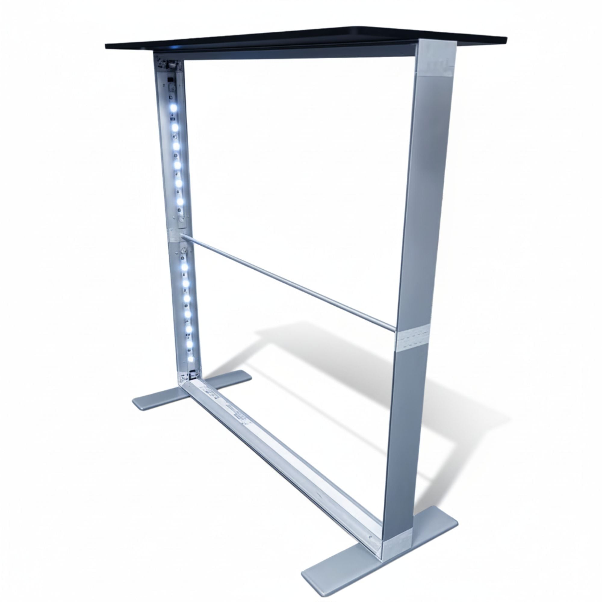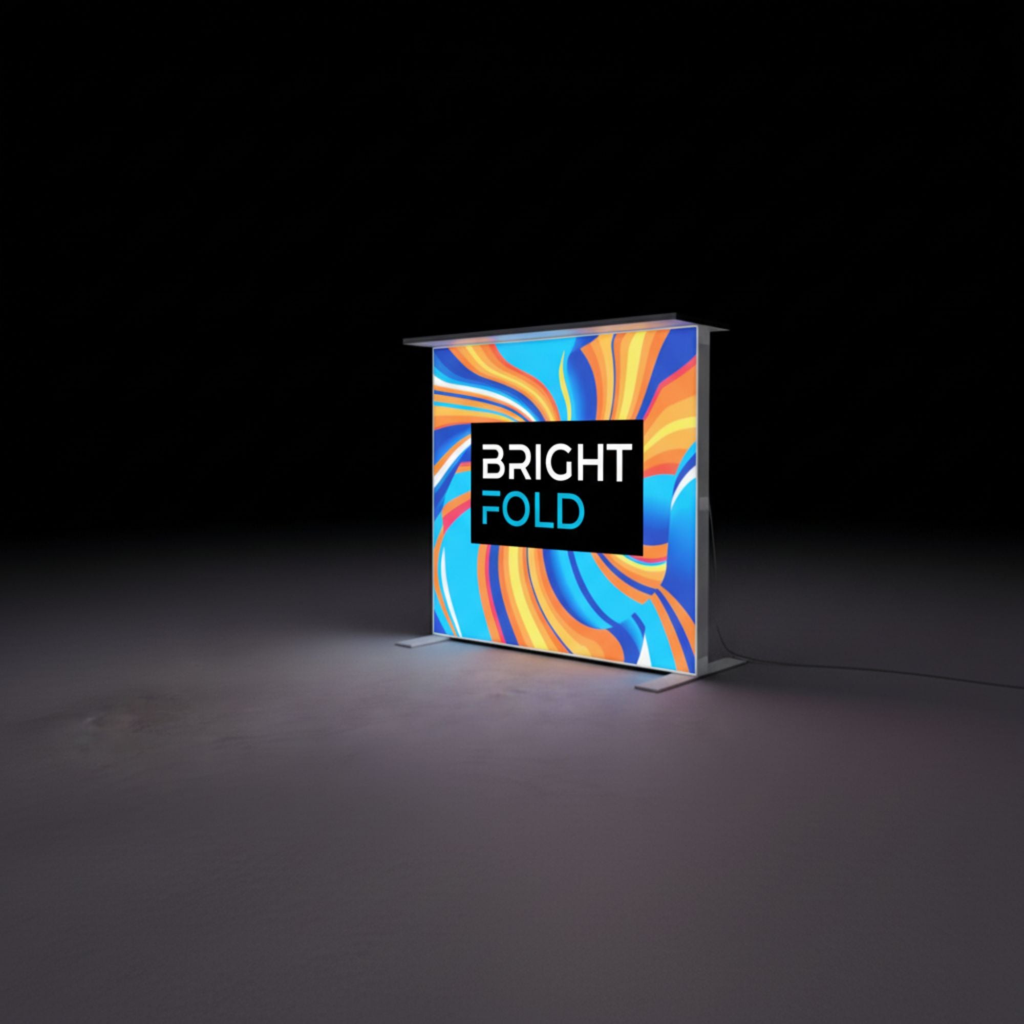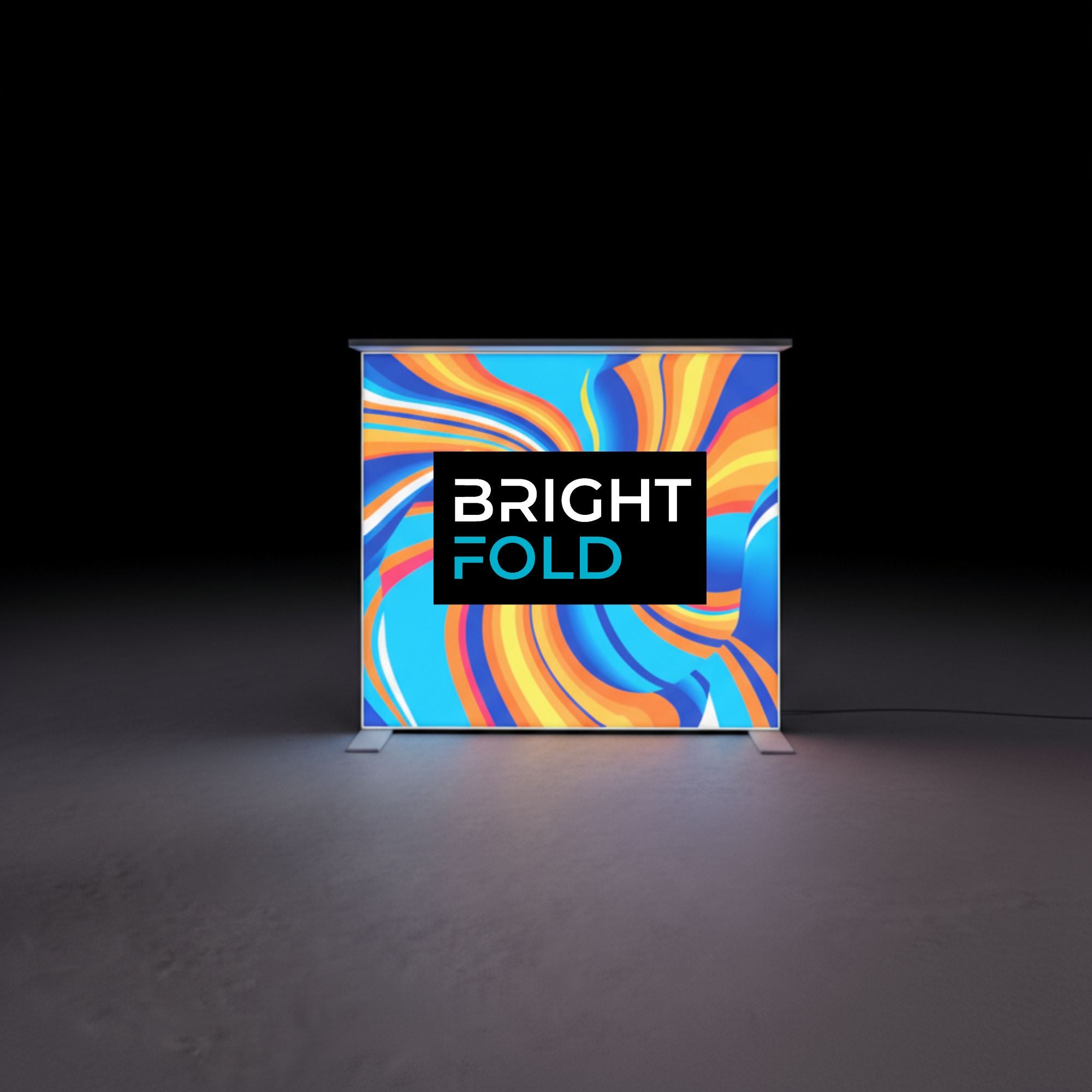 Create instant impact with a folding, illuminated counter that sets up and packs down in under a minute. The Bright Fold LED Lightbox Counter combines a slim 85mm profile with an internal transformer (no bulky power pack on show) for a clean, professional look. Built on a durable aluminium frame and supplied with a wheeled carry bag, it’s a quick, portable solution for exhibitions, events and retail spaces.
