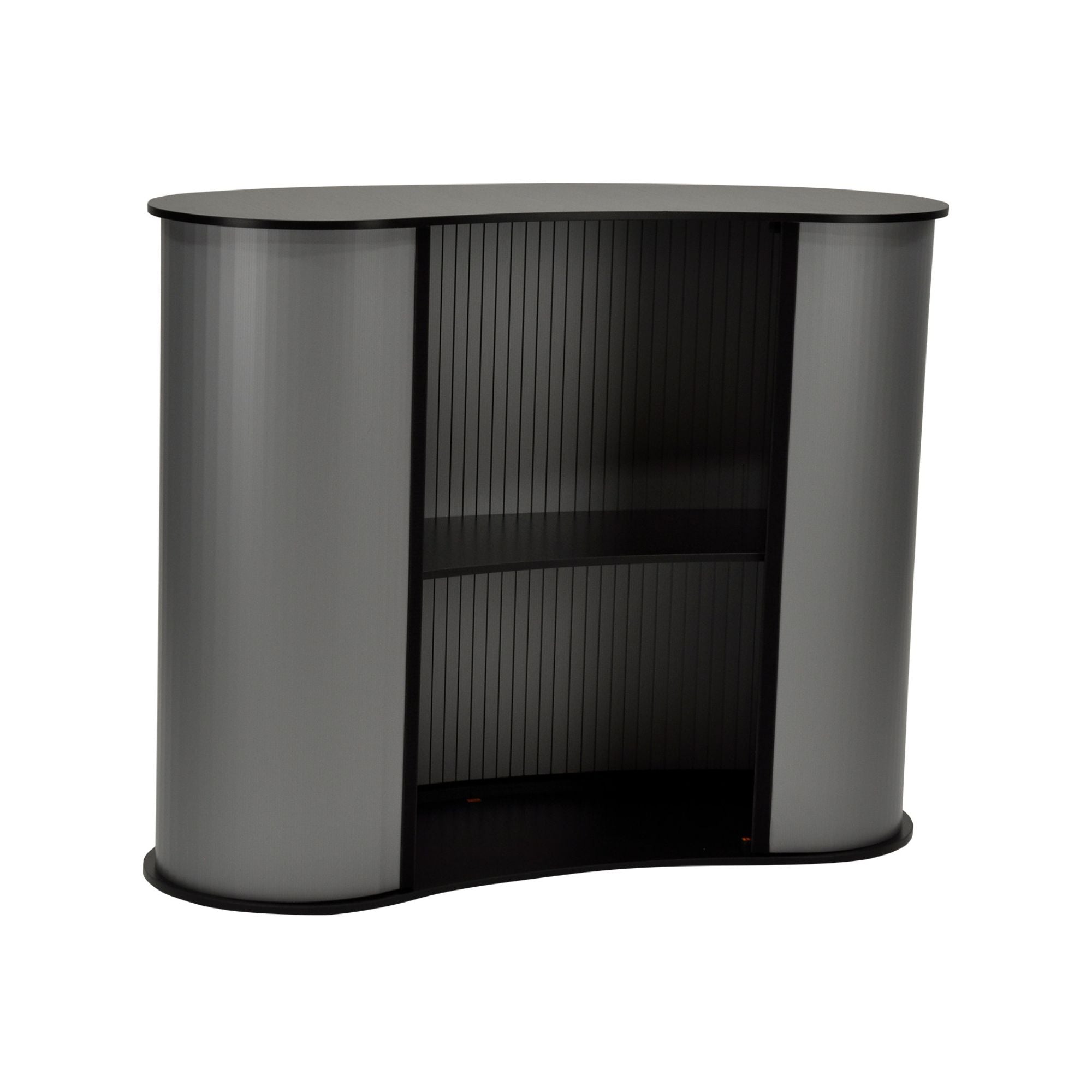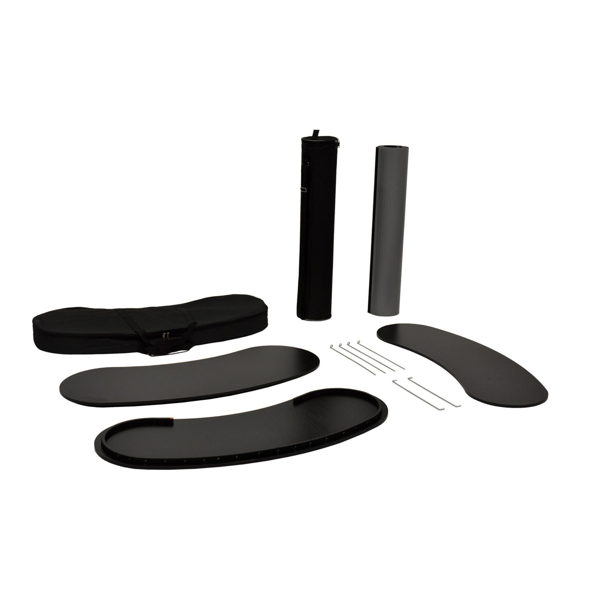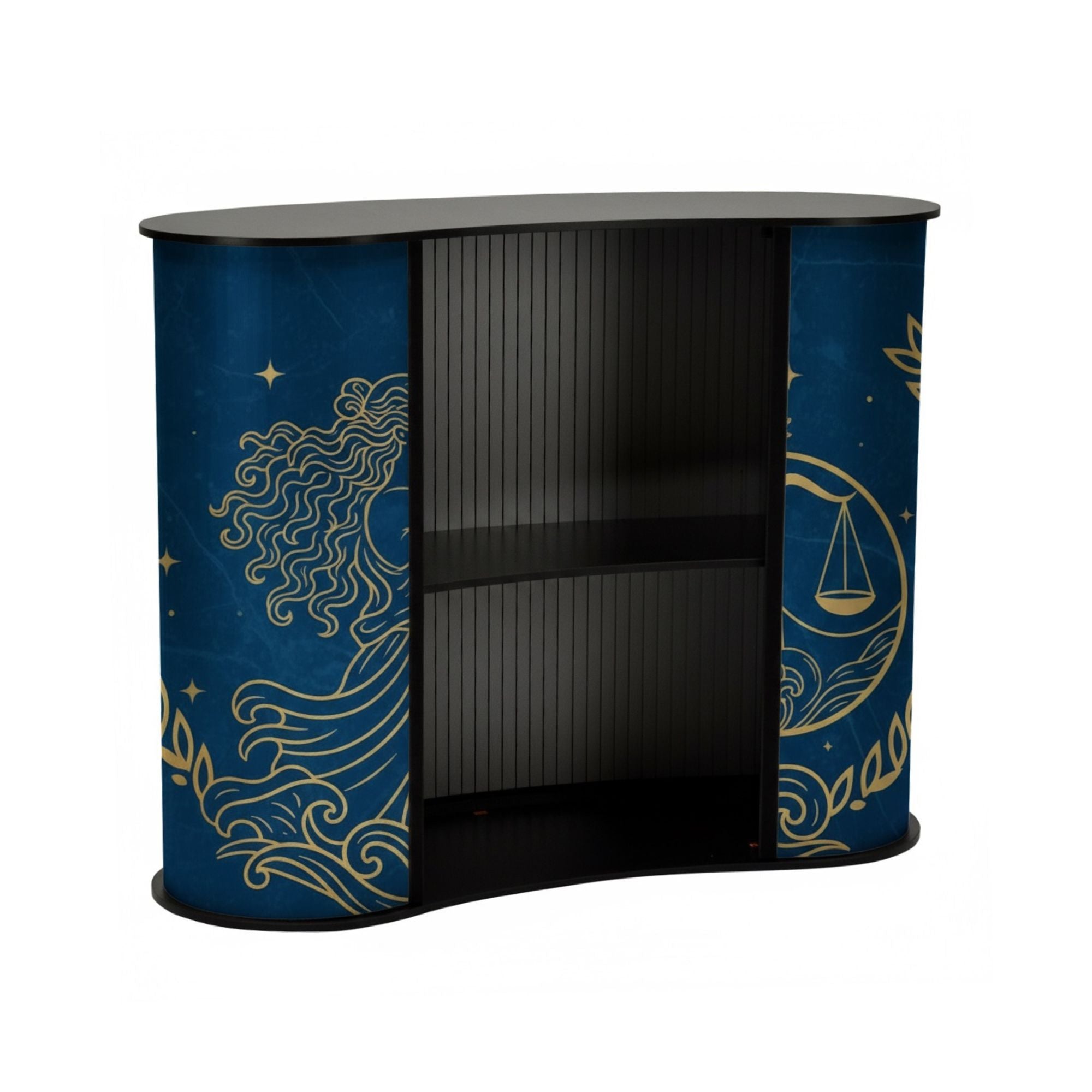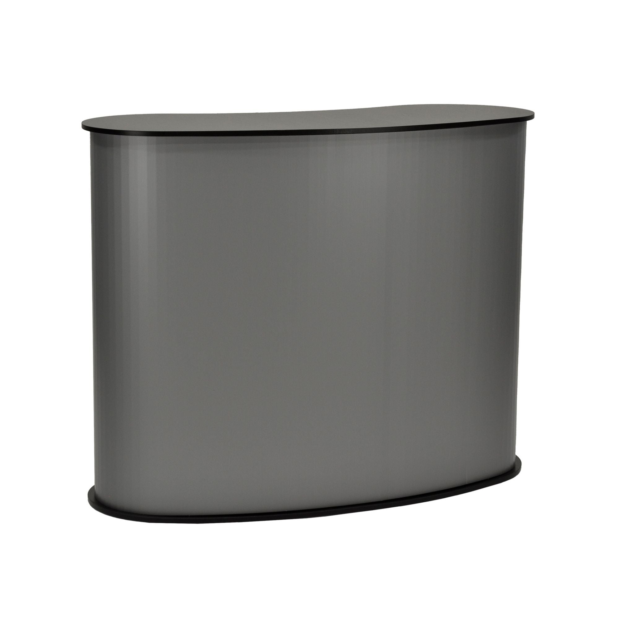 The Calipso Curved Promotional Counter is a sleek and stable display solution, perfect for making a memorable impression at events and exhibitions. Designed with versatility in mind, it features a reversible countertop with black on one side and teak on the other, letting you easily adjust the look to match your brand or event style.