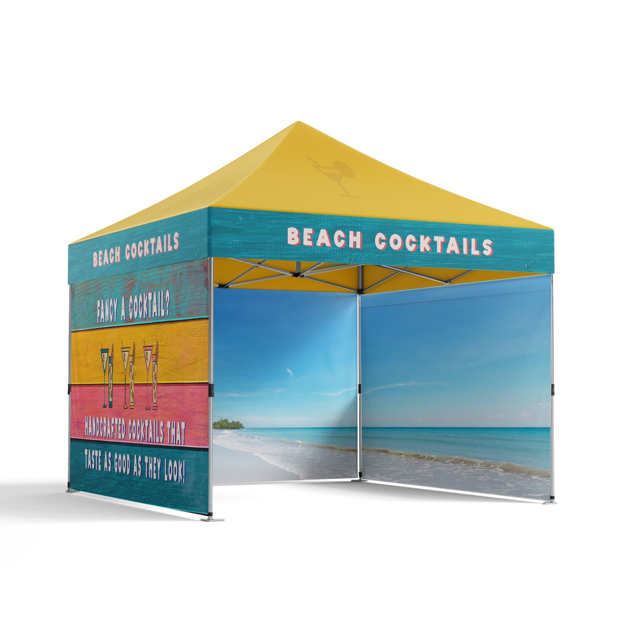 Thanks to our years of experience in gazebo printing, the custom graphics can be applied to any of the covers, including the canopy, meaning you can ensure your message can be seen from all angles at your event.
