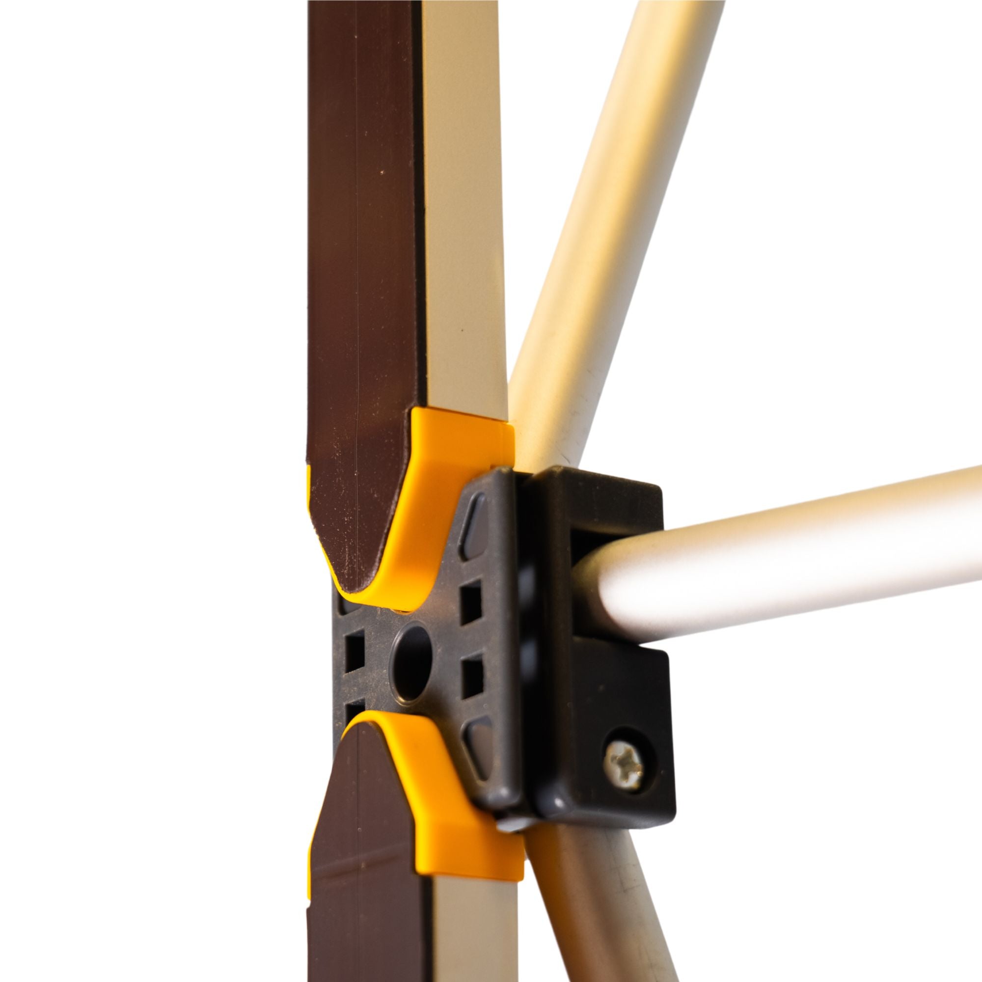 If you choose the bundle upgrade, the wheeled transport case can be easily upgraded into an attractive branded counter. The upgrade bundle contains a graphic wrap which wraps around the case and is fastened using a hook and loop fastener strip. A wooden table top is also supplied and can be placed on top of the counter, and comes in either a birch, white or black finish. The lights are also simply attached to the frame for even greater exposure, fitting in comfortably to the top of the frame.
