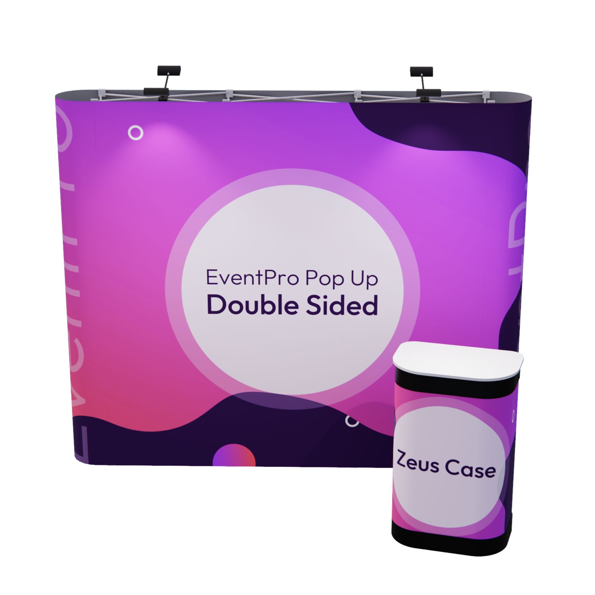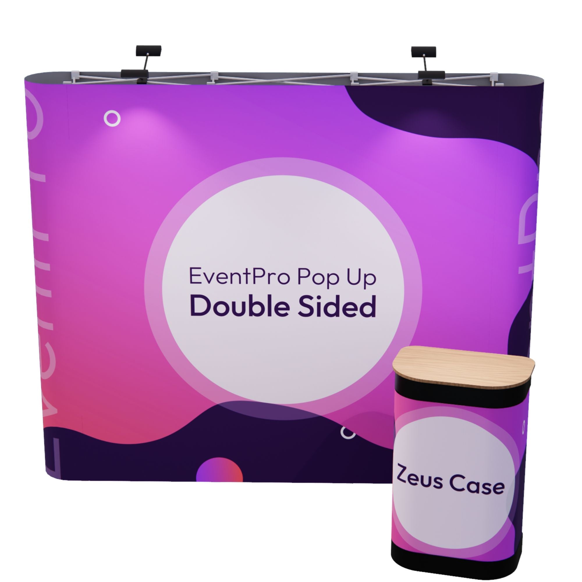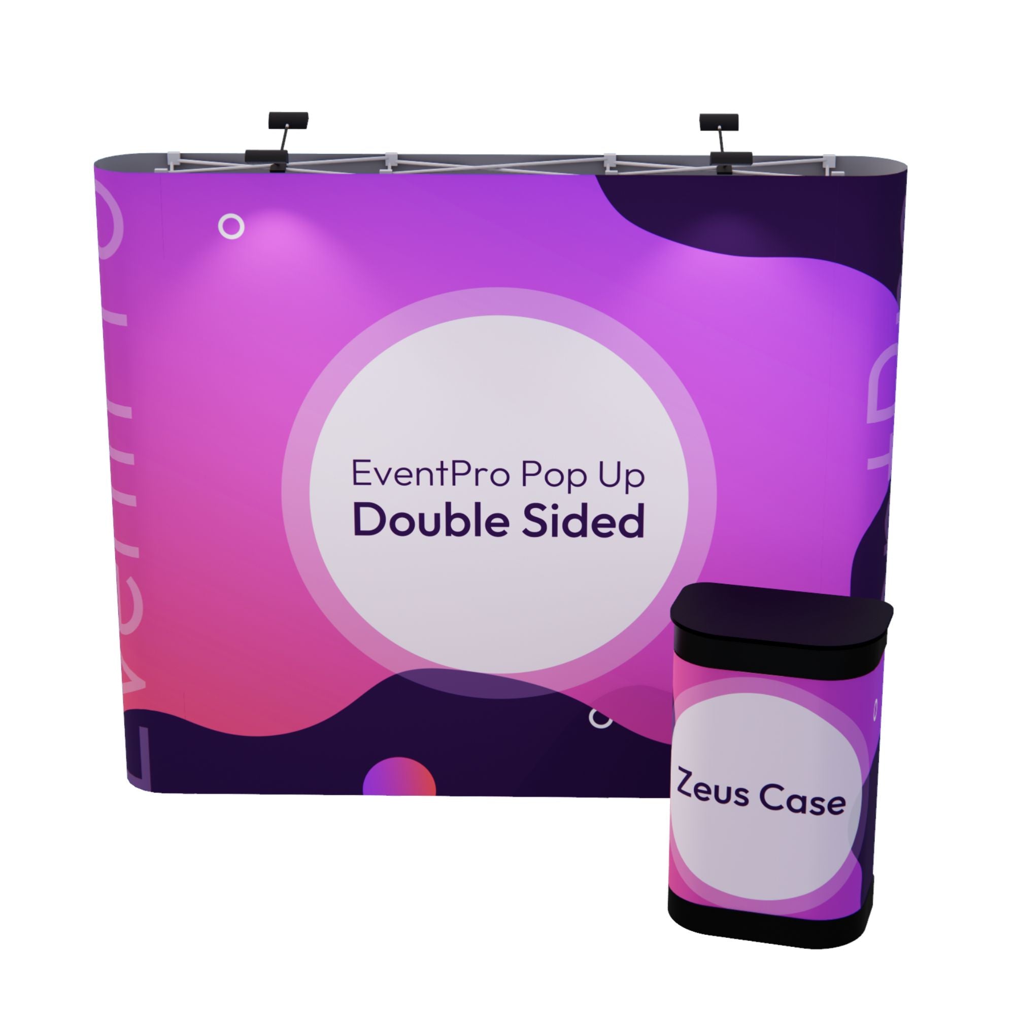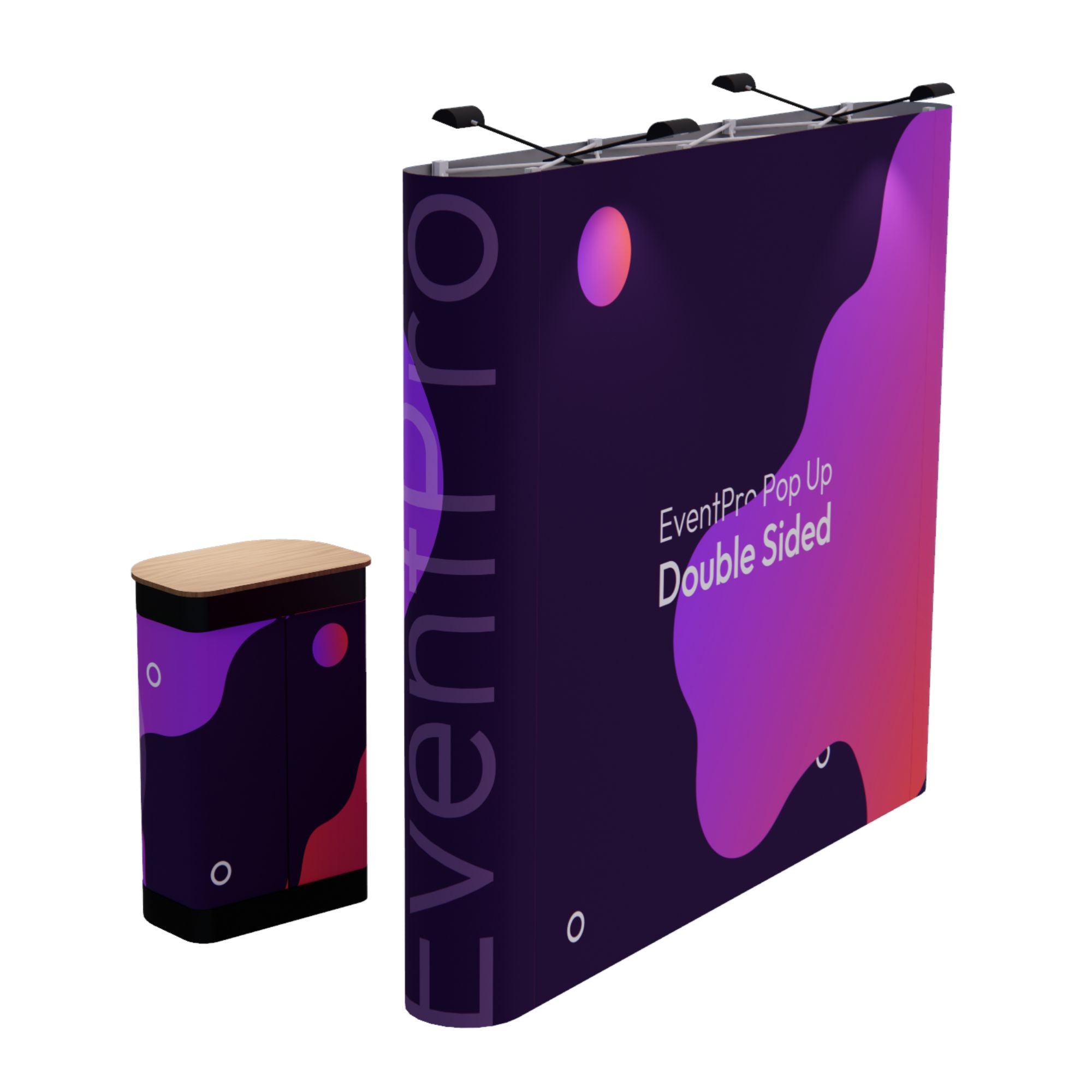 The EventPro Double Sided 3x3 Straight pop up stand is a portable exhibition stand that can help you stand out at a trade show, exhibition or other promotional event. A 3x3 EventPro straight pop up stand can be used for either a shell-scheme or space-only exhibiting space, and can be assembled quickly and easily.