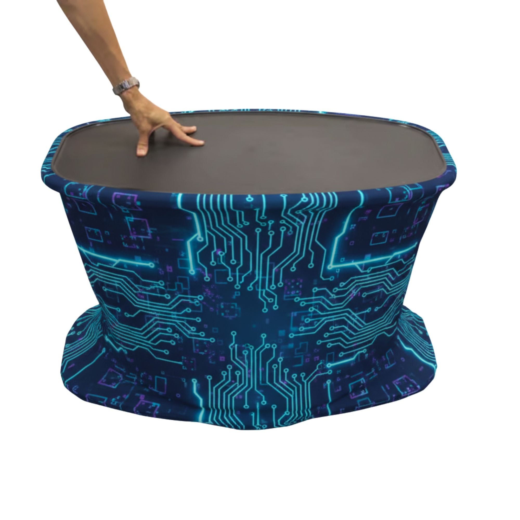 Available in either an oval or rectangle shape, the textile graphics can be easily washed if needed.
