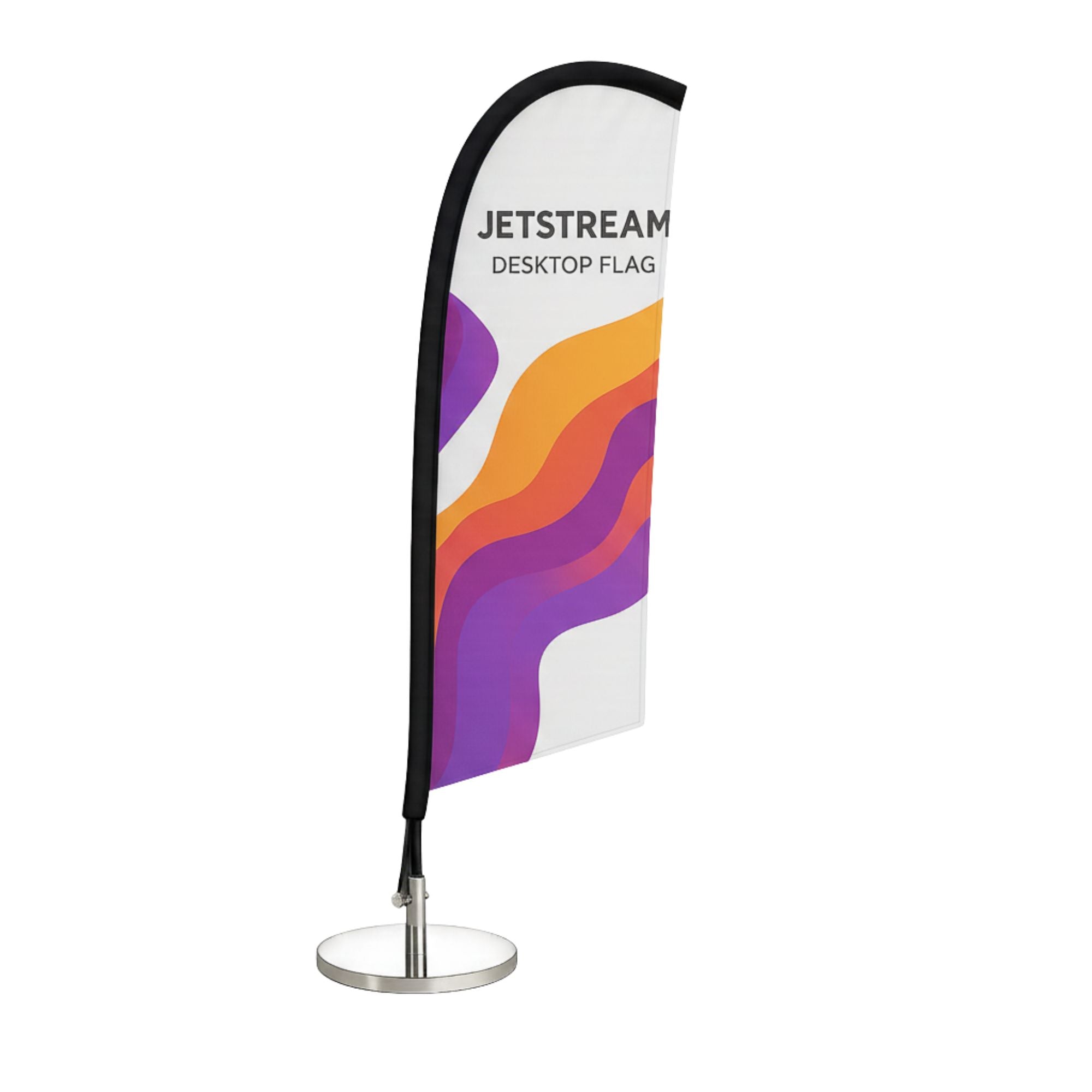 These visually appealing miniature flags pack a powerful promotional punch, making the most of otherwise unused desktop or countertop spaces. Suitable for feather and teardrop shaped graphics, this simple yet effective display tool offers an economical marketing solution at competitive trade prices.