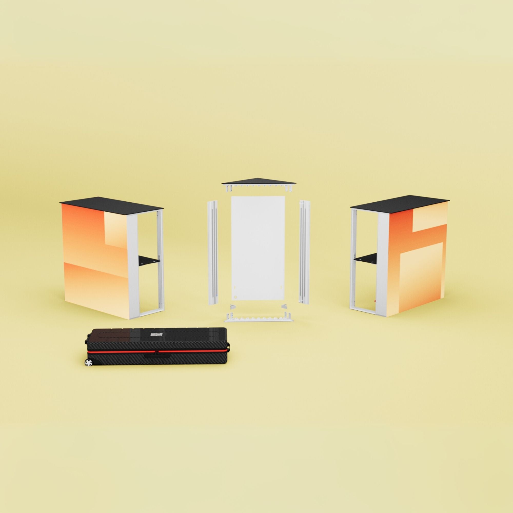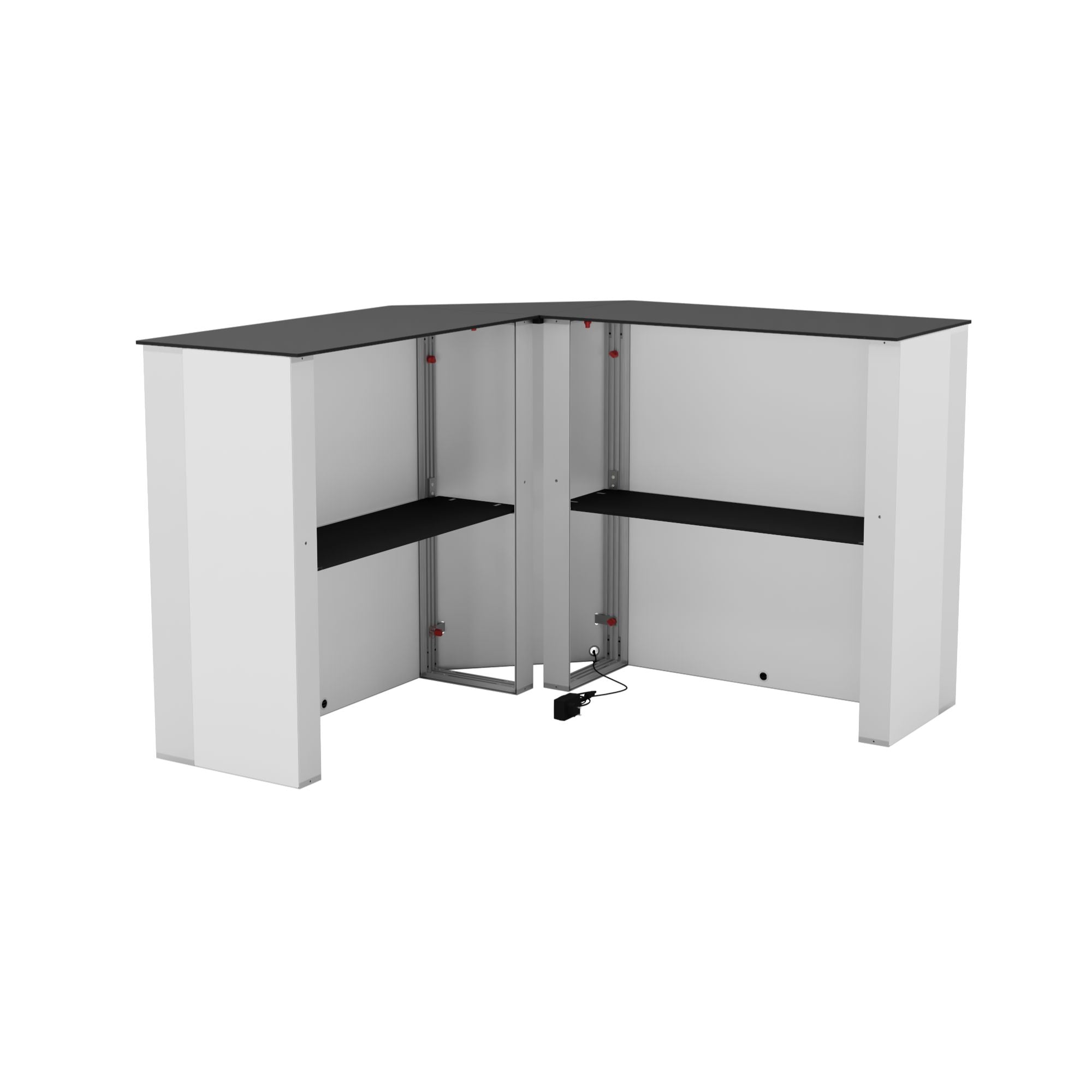 Thanks to its smart plug-in system, the Counter ONE Corner Set can be assembled quickly without tools. Each component is supplied in a sturdy ABS transport case for safe storage and easy mobility between events. With the option to add lockable doors for secure storage, this illuminated counter bundle offers both practicality and high-impact style, making it an ideal choice for any professional display setup.