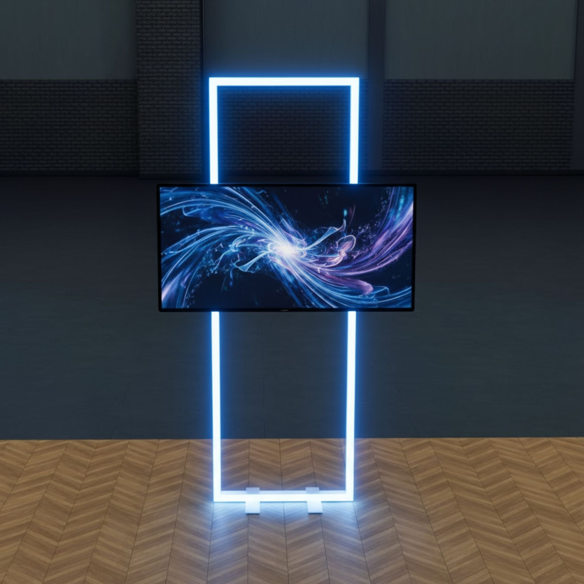 Bring illuminated impact and on-screen content together in one package. This bundle includes the LINEUP LED Stele (RGB backlit display frame) plus the LINEUP Stele TV Bracket to mount a screen directly to the frame. Choose your Stele height, set the lighting to any of 16 million colours, and add a monitor (up to 10 kg, VESA 200/400) for dynamic product demos, menus or brand films—ideal for showrooms, retail, exhibitions and events. Tool-free assembly, a slim profile and the supplied ABS wheeled case make transport and setup effortless. TV/monitor not included.