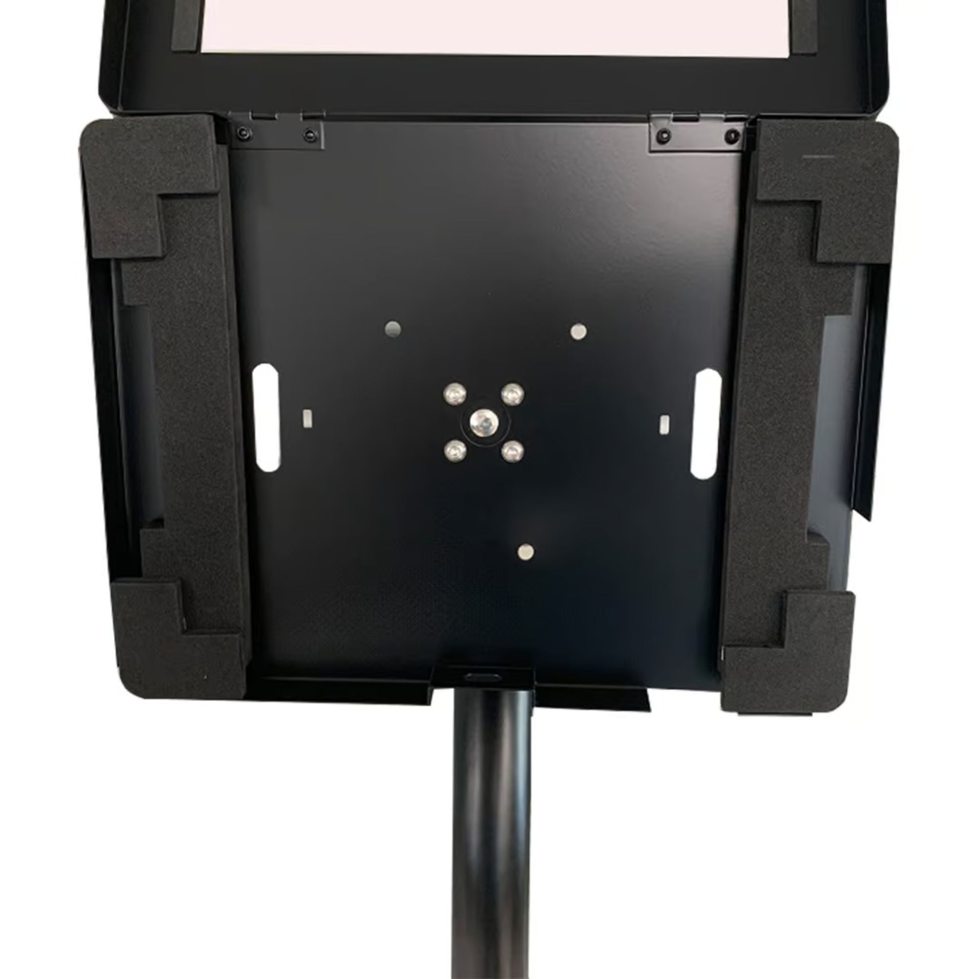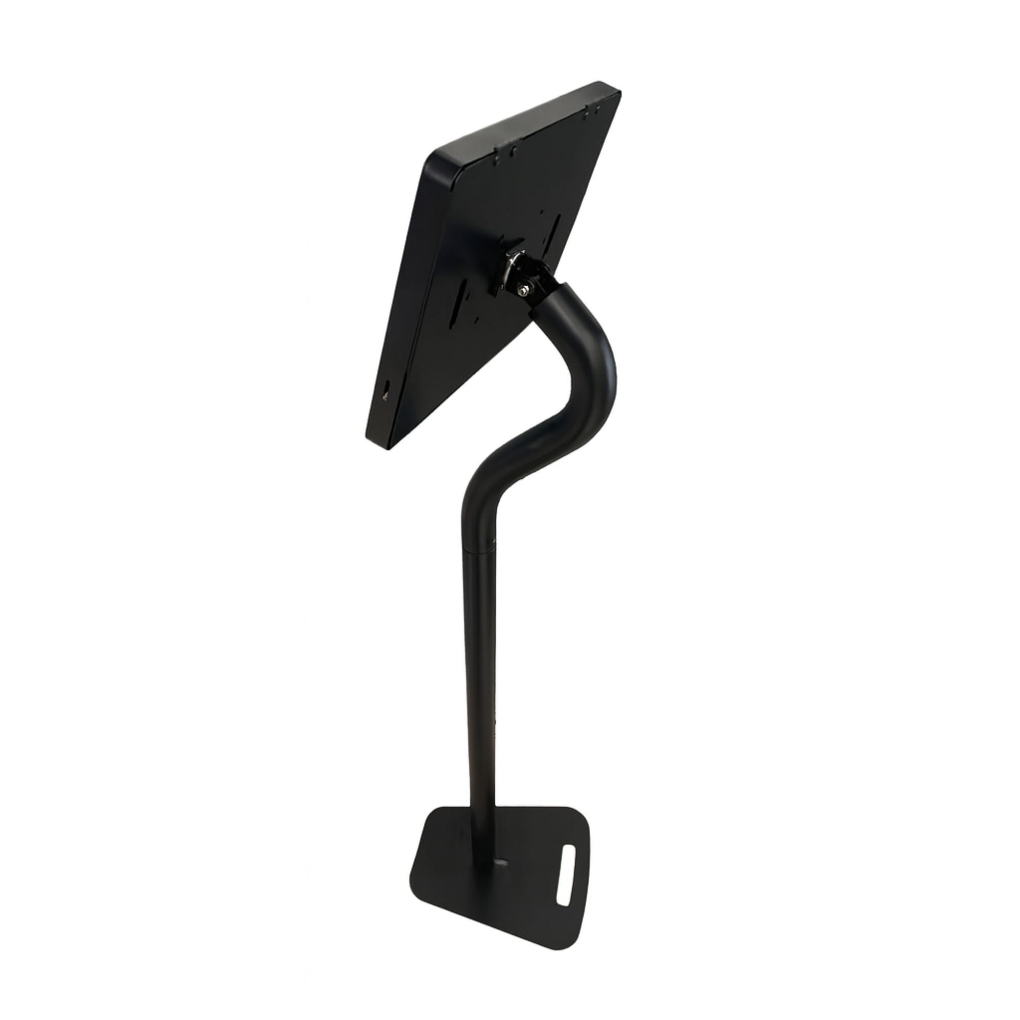 This matt black iPad and tablet holder is designed for secure landscape use with devices between 9.7″ and 11″, including popular iPad and Samsung Galaxy Tab models. Featuring a lockable frame-style holder, it prevents device removal while covering the home button to ensure visitors stay on your chosen website or app. Quick and easy to assemble in just two minutes by one person, this sturdy aluminium display is ideal for exhibitions, retail environments, receptions, and other indoor spaces where interactive content can help engage your audience. The durable construction comes with a 5-year guarantee, offering a long-lasting solution for professional display needs.