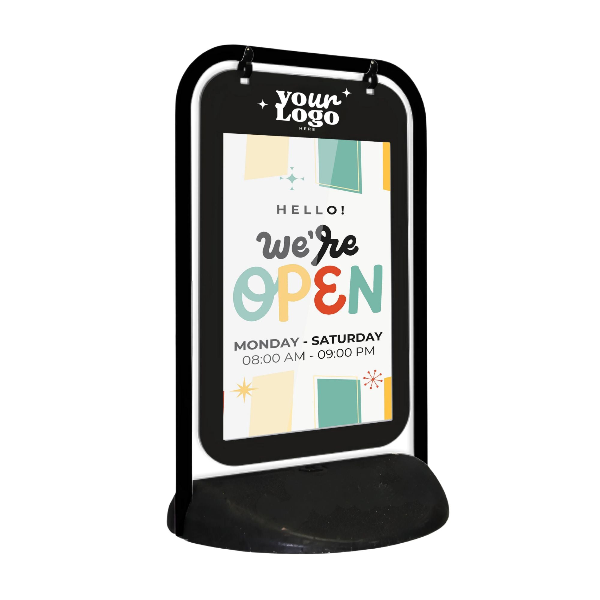 The Swinger 2 Poster Sign is one of the most popular pavement boards around and can be used for a variety of advertising applications such as high street promotion, restaurant or café displays, pubs, roadside advertising, seasonal campaigns, hairdressers, local shops and much, much more.